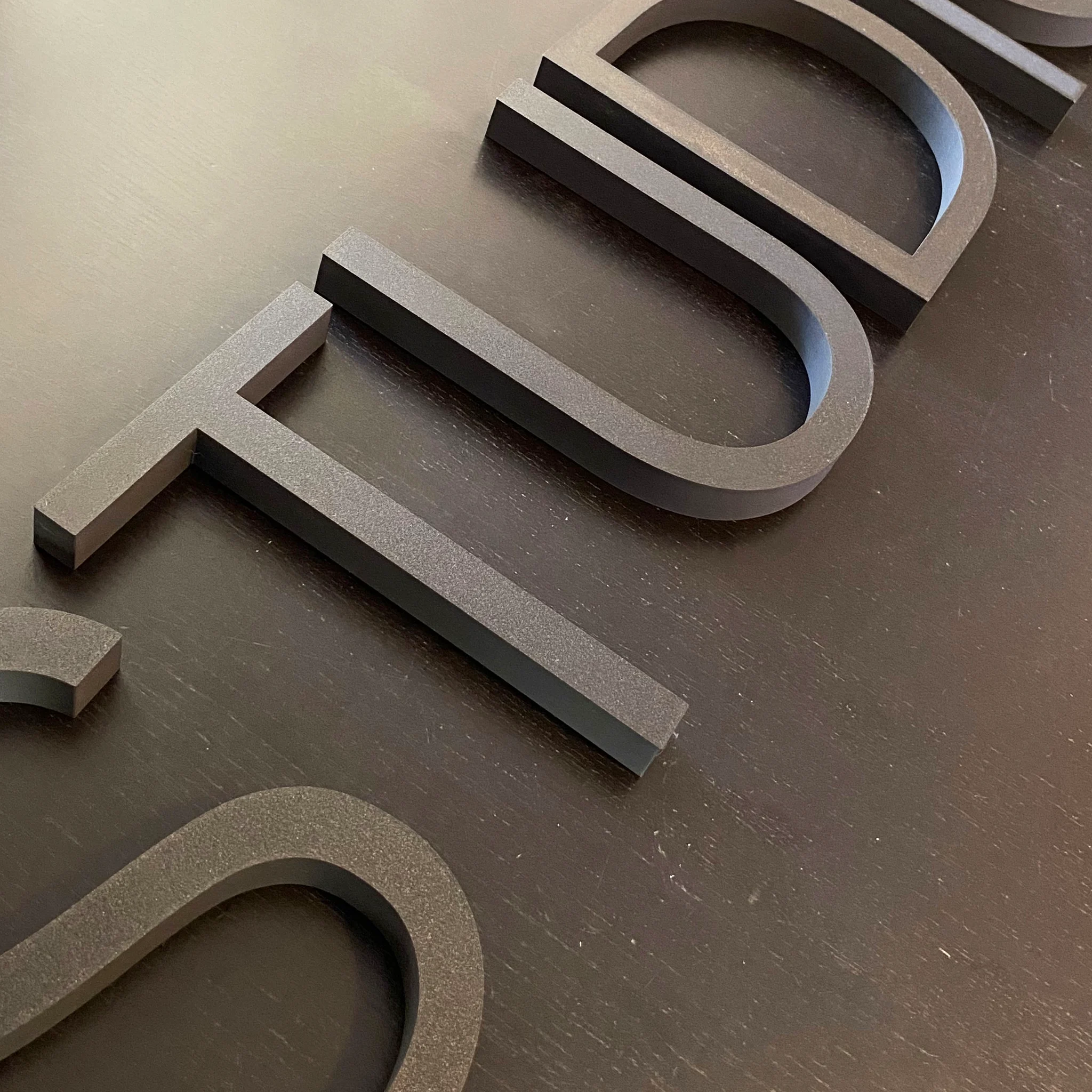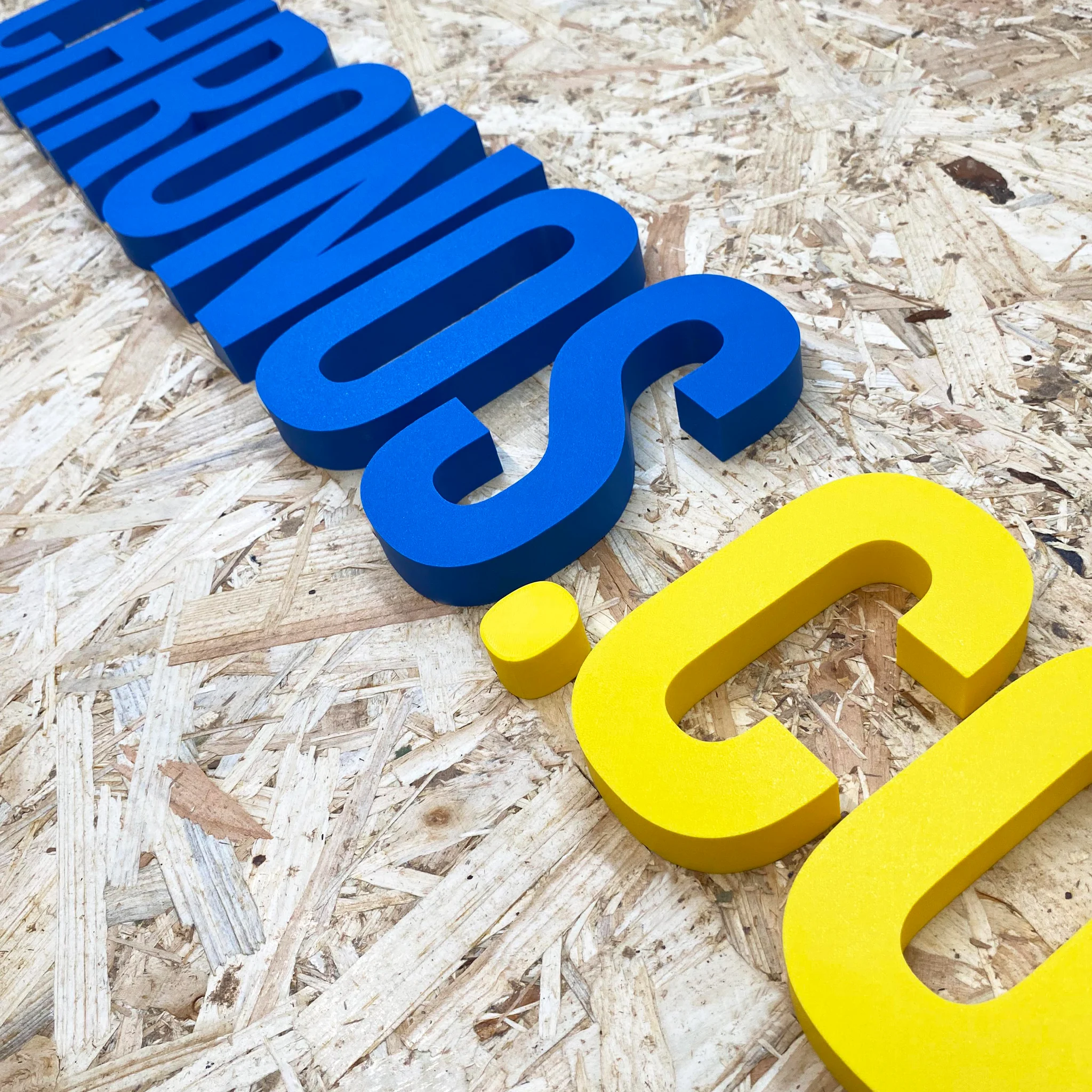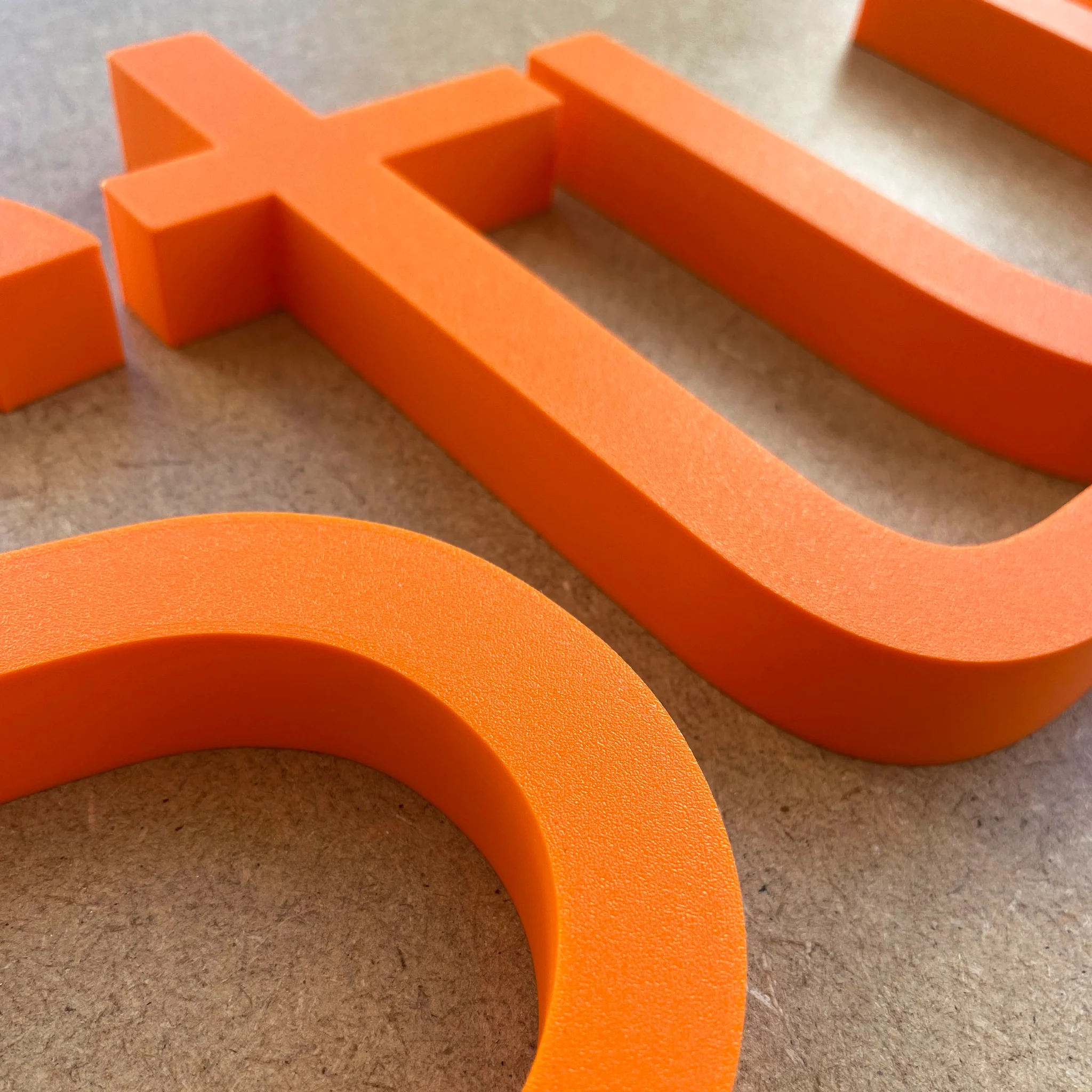Letras corpóreas fabricadas en PLA y compuestas por una sola pieza maciza.